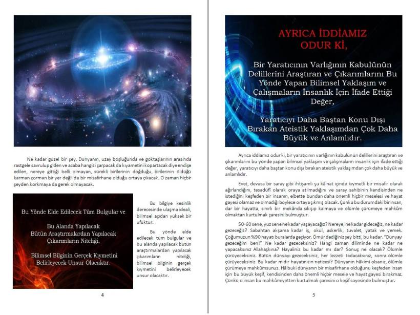 * Kâinat üzerinde gerçekleşen şaşırtıcı oluşumları ve canlılığı açıklamak için yaratıcıya alternatif olarak geliştirilen teorileri, mantık ve bilim zemininde akademik olarak ele almak,