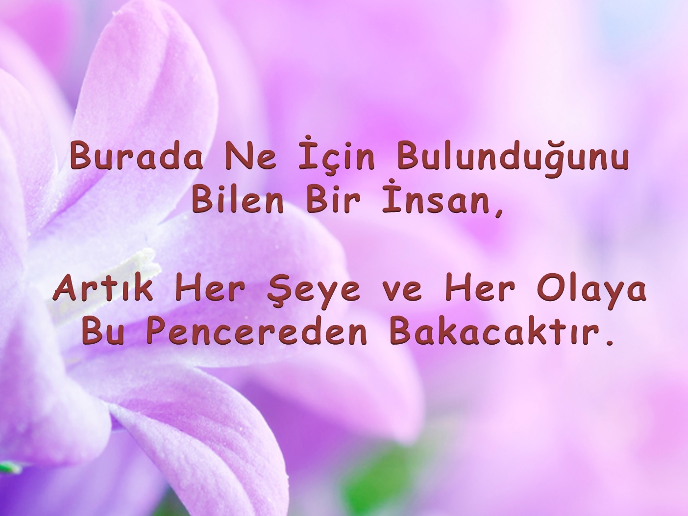 Burada ne için bulunduğunu bilen bir insan, artık her şeye ve her olaya bu pencereden bakacaktır.