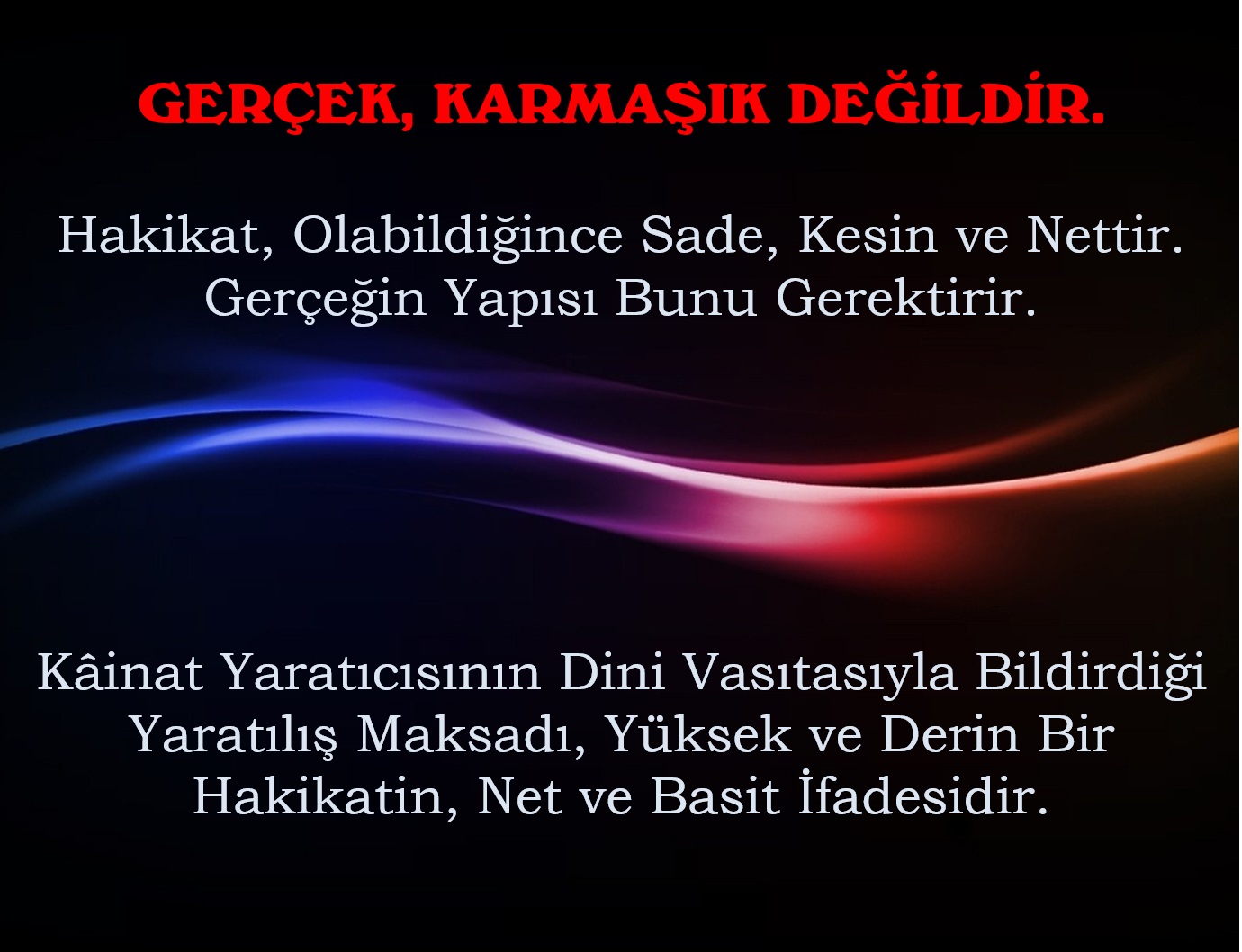 Kâinat yaratıcısının dini vasıtasıyla bildirdiği yaratılış maksadı, yüksek ve derin bir hakikatin, net ve basit ifadesidir.