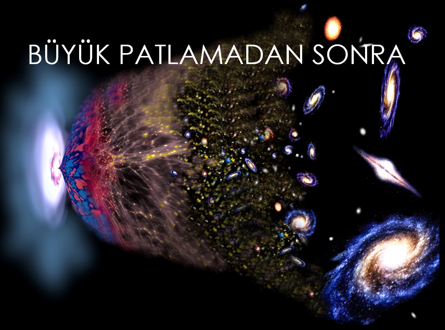 Şimdi aşina olduğunuz aşağıdaki galaksi resimlerine bu sefer “alıcı gözle” tekrar bakmanızı istiyoruz. Çünkü size üzerinde düşünmenizi isteyeceğimiz çok ciddi bir soru soracağız.. Lütfen resimlerin arasına yerleştirdiğimiz her bir cümleyi dikkatle ve üzerinde düşünerek okuyunuz. (Her bir resmi üzerine tıklayarak daha fazla büyütebilirsiniz.)