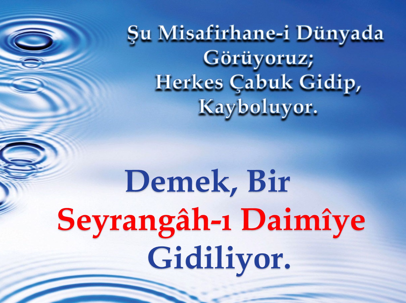 “Şu misafirhane-i dünyada görüyoruz; herkes çabuk gidip, kayboluyor. Demek, bir seyrangâh-ı daimîye gidiliyor.”