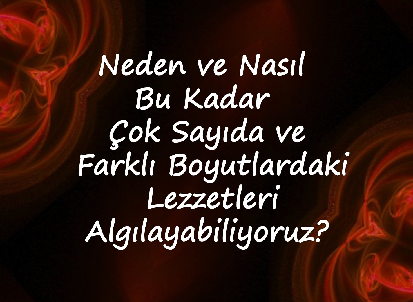 Sahi, bazılarının zannınca madem bir ziyafet sofrasında değiliz ve her şey sadece hayatta kalma mücadelesinin ve kozmik bir tesadüfün parçası, o halde neden ve nasıl bu kadar çok sayıda ve farklı boyutlardaki lezzetleri algılayabiliyoruz? Bunun ne anlamı var ki?