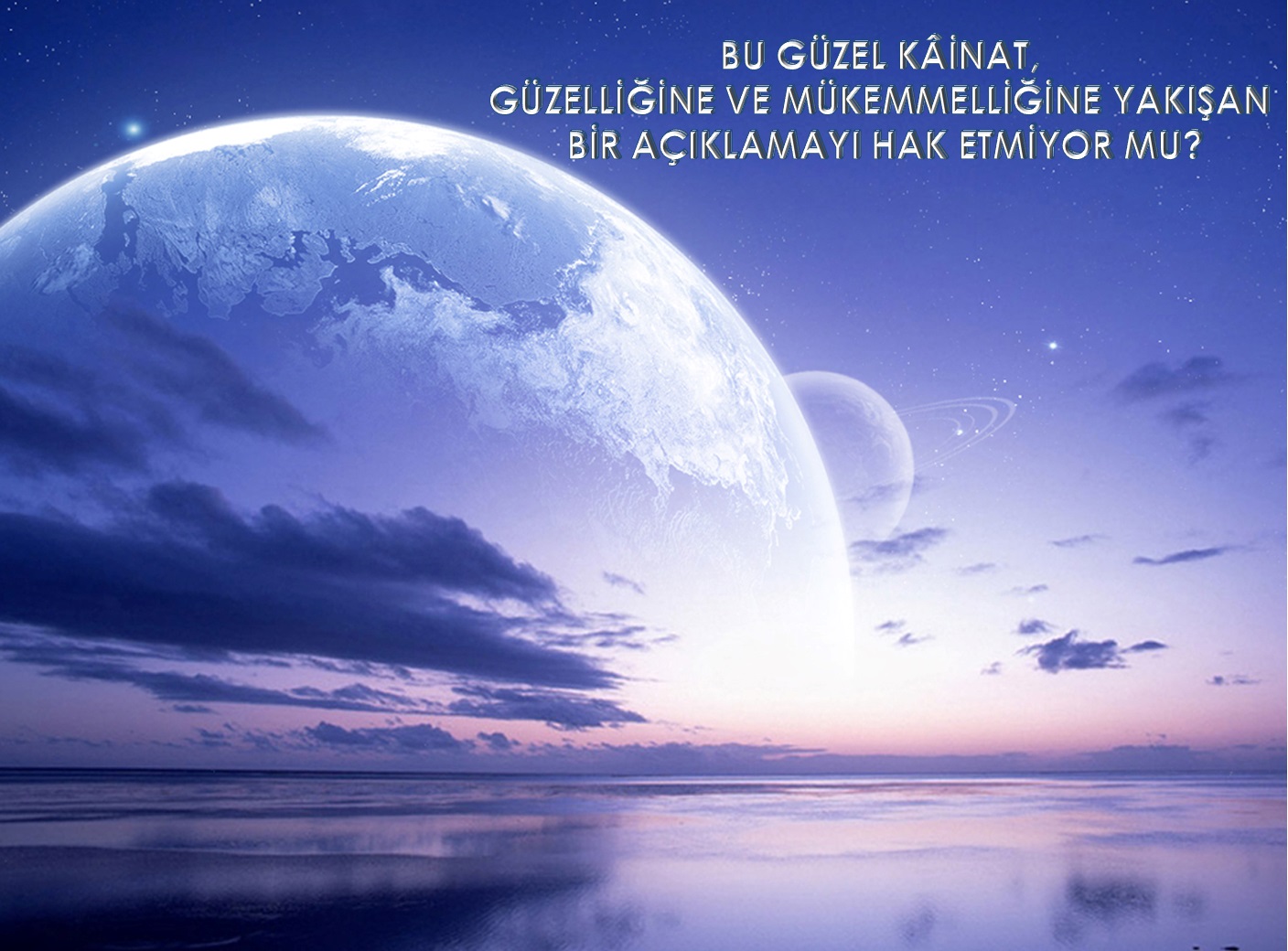 Herkes gibi bizim de aklımızın hayret içinde kaldığı ve devasa büyüklükte, ihtişamlı ve canlı bir tablo olan bu güzel kâinat, acaba güzelliğine ve mükemmelliğine yakışan bir açıklamayı hak etmiyor mu?