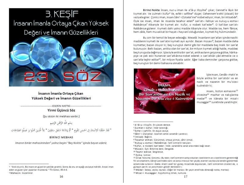 Gerek Risale-i Nur’a gönül vermiş düzenli okuyucularına, gerek Risale-i Nur’u okumaya yeni başlayacaklara, Risale-i Nur’un Yirmi Üçüncü Söz’ünün izahı olan çalışmamızı tavsiye ve takdim ediyoruz.