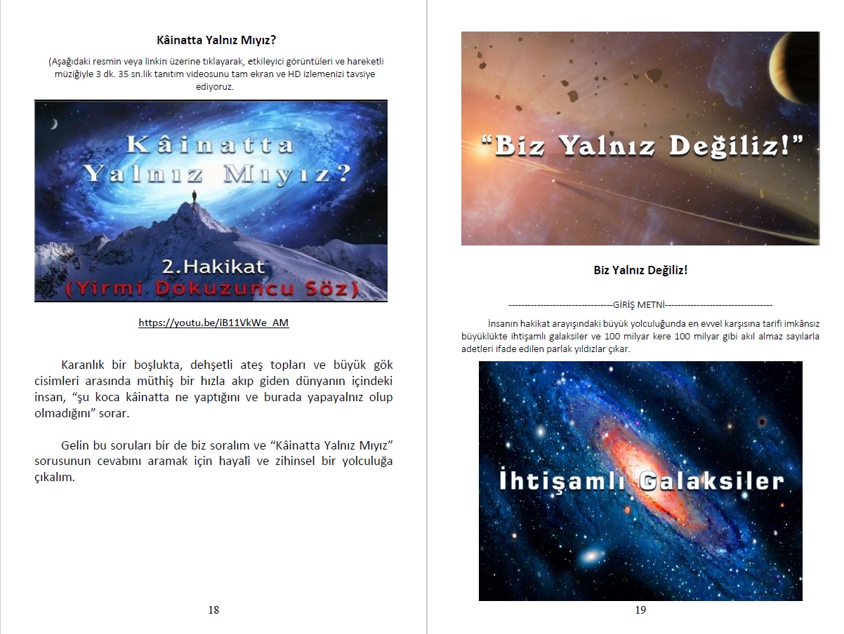 Kâinatta Yalnız Mıyız Görsel/İnteraktif Kitap İndirme Linki: (Word ve Pdf formatında) http://goo.gl/hNIUou