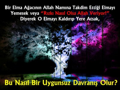 Acaba Allah’a karşı büyük bir hürmetsizliği ve açlıktan ölmeyi göze almak gibi bir cahil cesaretini ifade etmez mi? Çünkü o rızık, o ağacın eliyle size gönderiliyor!