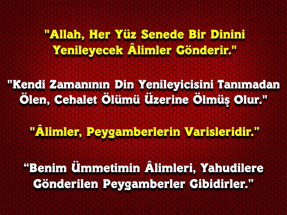 Risale-i Nur’un bizim için ifade ettiği manayı daha iyi anlamak için, bu konuda sahip olduğumuz gerçekçi yaklaşımızı başta hadislerle teyit edelim. Peygamberimiz demiş ki: “Allah, her yüz senede bir dinini yenileyecek âlimler gönderir.” “Kendi zamanının din yenileyicisini tanımadan ölen, cehalet ölümü üzerine ölmüş olur.” “Âlimler, peygamberlerin varisleridir.” “Benim ümmetimin âlimleri, yahudilere gönderilen peygamberler gibidirler.”