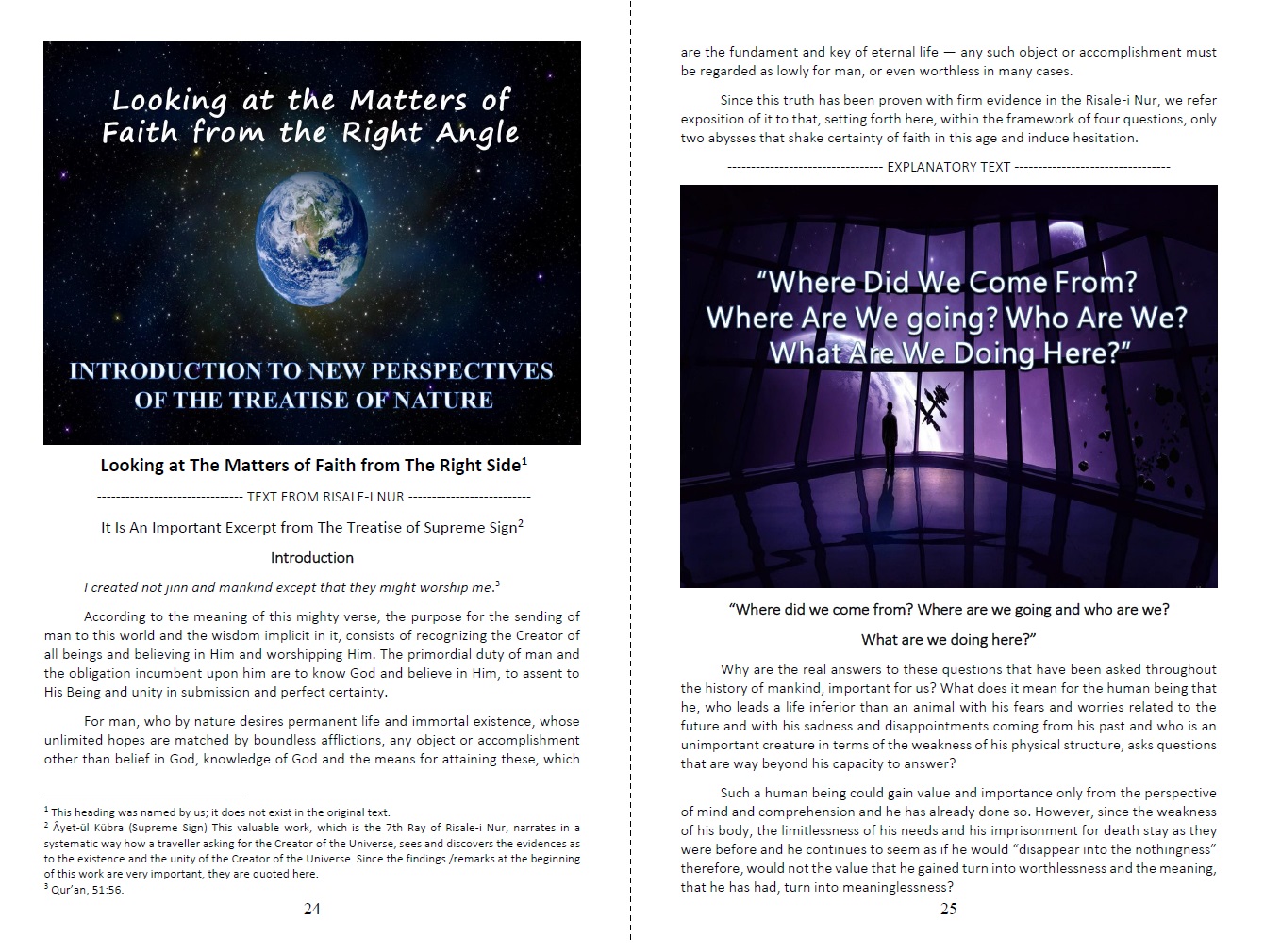 You can download the text of our book and its visual/interactive versions from the folder of “New Perspectives from The Treatise of Nature” in “English Books” section in this address. Besides, you can view or download the files of all of our books, and videos, texts and PowerPoint presentations of our seminars altogether or one by one, from these storage spaces where all of our work on Risale-i Nur (Treatise of Light) are uploaded.