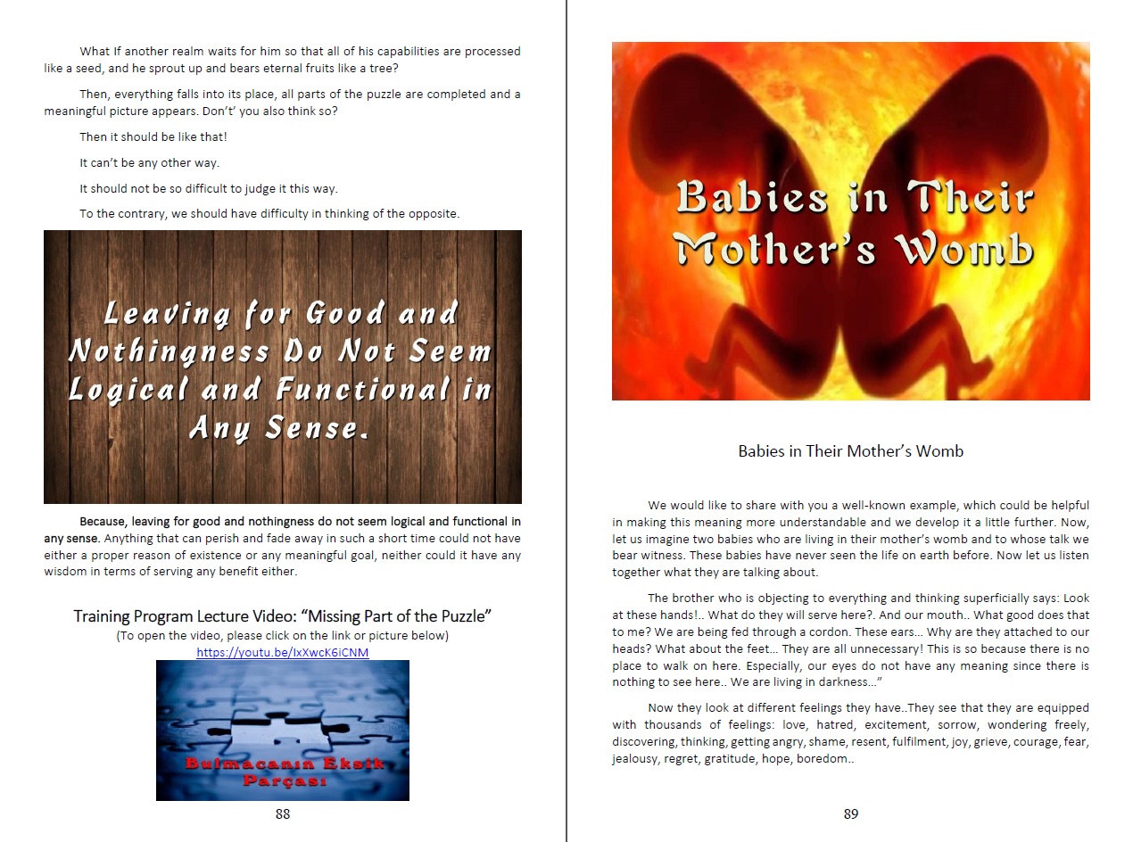 Reading and watching the written truths in a verbal and visual format (with additional explanations not provided in our book) enables you to better understand and feel them. In this way, you are following the most fruitful method in understanding the knowledge of faith, which cannot be understood just with intellect but rather are “felt truths”, and in opening the door for new perspectives for them. We keenly believe that with this method of reinforcement (Allah willing) highest level of benefit will be realized in terms of understanding Risale-i Nur and the universe.