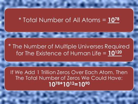 The words of Weinberger are remarkable. But, why should it be confusing to make conclusions from this data? In fact, it is not confusing at all. What does it mean to accept the existing of 10120 universes in addition to the existing one instead of accepting the existence of the Creator? This number means this: in the universe, the total number of atoms is 1078. If we put 1 trillion, that is 1012, zeros next to it; this makes up: 1078*1012=1090. Still this is an unbelievably smaller number than 10120. In other words, by accepting this, you have to accept without any evidence the existence of such a big number of universes, which is much bigger than the number you reach when you add 1 trillion zeros over each atom in the universe.