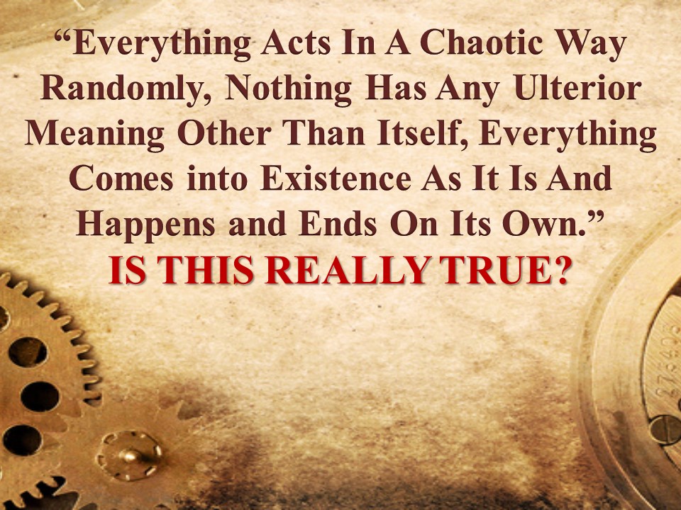 When we look at this world where we live, what do we see? Do we suppose that “everything acts in a chaotic way randomly, nothing has any ulterior meaning other than itself, everything comes into existence as it is and happens and ends on its own”? Anyone who sees it this way and supposes like that, of course, can’t comprehend either the Creator or the truth of eternal life necessitated by Him. However, although it is so apparent that this is not the case, what can be said to someone who wants to see it this way?