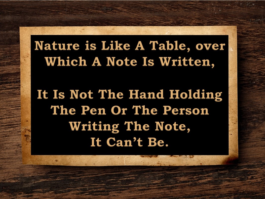 Nature is like a table over which a note is written. It is not the hand holding the pen or the person writing the note. It can’t be.