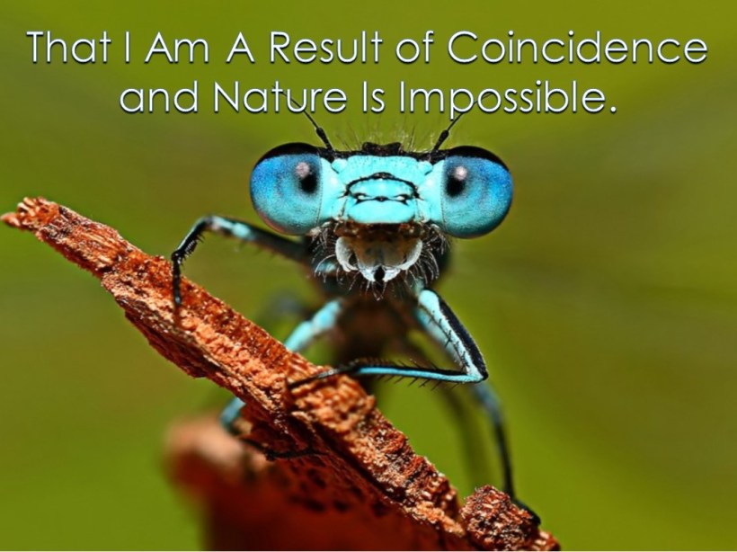 Since your horizon of thinking is opened as much as possible after all that you have seen, now you should be hearing what the fly is declaring aloud: “It is impossible for me to be considered a result of coincidence and natural causes!”