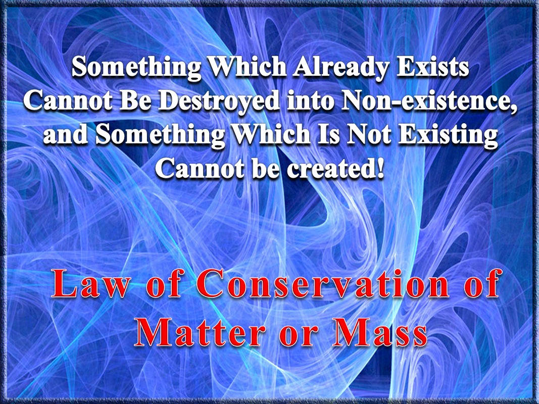 This Law, which is developed by French chemist Antoine Laurent de Lavoisier, and known also as “The Law of Conservation of Matter or Mass”, states that “Within an closed system, whose borders are determined, the amount of mass will stay fixed whatever the processes or reactions take place.” In other words, in a closed system, the status of the mass could be changed but new mass cannot be created and the existing mass cannot be annihilated. It is obvious that the purpose of this law is to determine the relationships in relation to weight during the transformation/reaction of the matter. By using this Law as a pretext, it is not possible to deny the act of creation which is continuously going on in our universe and this fact is observed by our naked eyes.