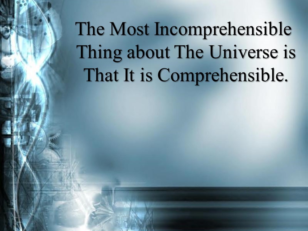 The second point is related to Albert Einstein’s following words: “The most incomprehensible thing about the universe is that it is comprehensible”. This point gives us a proper perspective about the existence of the universe and the visible reality of the matter. If it were not so, it would not be possible either to understand and explain, with orderly principles, something which is not existing or which we could not comprehend correctly.