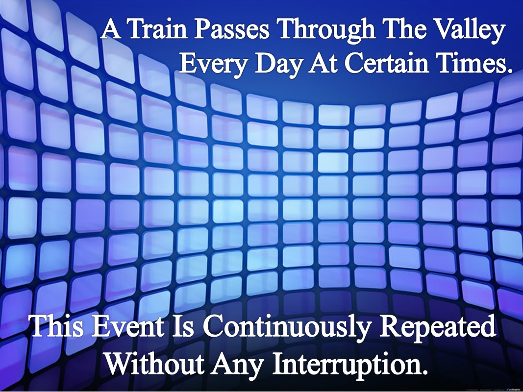 “A train passes through the valley every day at certain times. This event is continuously repeated without any interruption.”