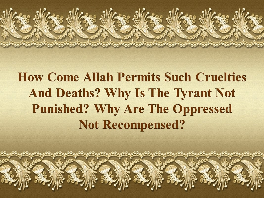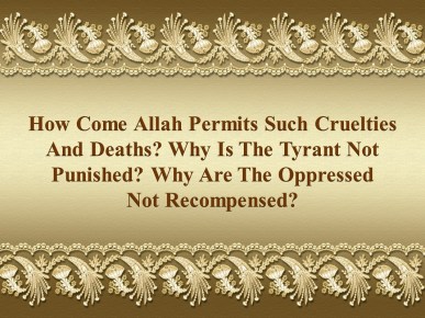 For instance, it can be said: “How come Allah permits such cruelties and deaths? Why is the tyrant not punished? Why are the oppressed not recompensed?”