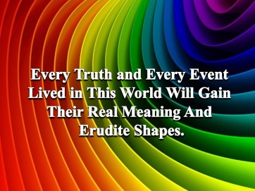 Every truth and every event lived in this world will gain their real meaning and erudite shapes.