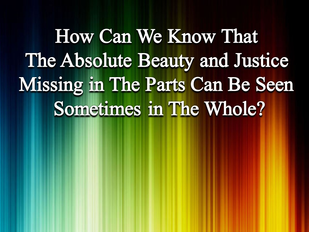 It can also be asked: “How can we know that the absolute beauty and justice missing in the parts can be seen sometimes in the whole?
