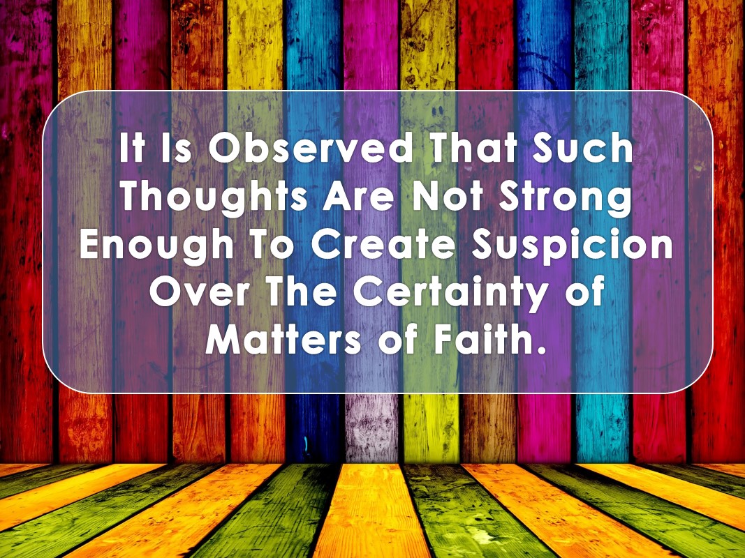 Therefore, it is seen that such thoughts, due to their characteristics, do not have such power that could cast doubt and hesitation on the accuracy of the matters of faith. That is enough for us as a point of relaxation, taking our faith under protection.