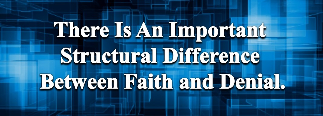 There is a fundamental difference between faith and denial. Faith is a judgment based on fixed information, it is a proof. It is the acceptance of something existing in reality, with evidence. It is an intellectual occupation.