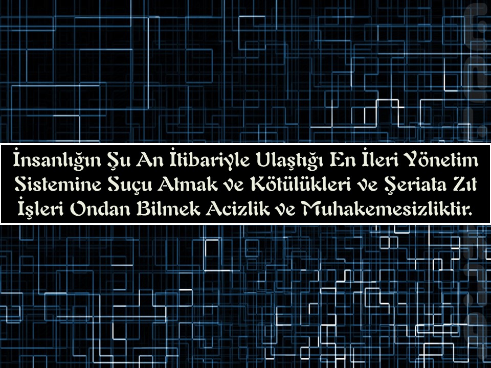 İnsanlığın şu an itibariyle ulaştığı en ileri yönetim sistemine suçu atmak ve kötülükleri ve şeriata zıt işleri ondan bilmek ise acizlik ve muhakemesizliktir.