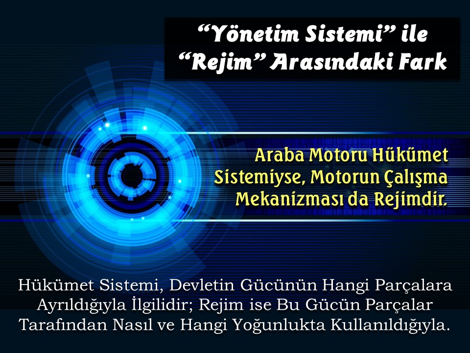 “Yönetim Sistemi” ile “Rejim” arasındaki farkı da iyi anlamak gerekli. (tabi “uygulamaları” da ayrı bir yere koymak gerek)