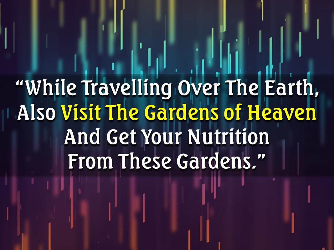 Once I had come across to a hadith, which we will present also its meaning: One day The Messenger of Allah spoke: “While travelling over the earth, also visit the gardens of heaven and get your nutrition from these gardens”