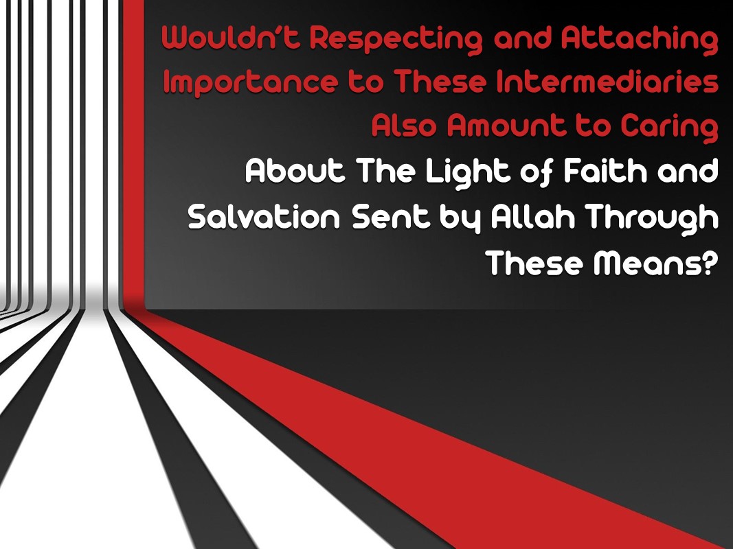 Because, that livelihood is sent to you at the hands of a tree! Respecting the apple coming to you by means of that tree means respecting Allah. Surely, it is necessary to respect the gifts send by a Sultan with his officers and these officers are also to be respected. Disregarding these officers and mistreating them would mean disrespecting and insulting the ruler who sent them. In a similar fashion, it is Allah who directs us to the right path, leading us to salvation. However, several means like your friends whom you love in the name of Allah and who are telling you about Allah and leading you towards Him; the scholars who are spreading the knowledge as the moral and spiritual successors of the prophets and books telling the truths could be like these intermediary officers who are sent you by Allah and to be the means of your ascending to heaven. How do we know that this is not the case?