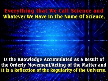 Everything that we call science and whatever we have in the name of science, is the knowledge accumulated as a result of the orderly movement/acting of the matter and it is a reflection of the regularity of the universe. If the matter did not act orderly, would we have anything called science? Of course we would not.
