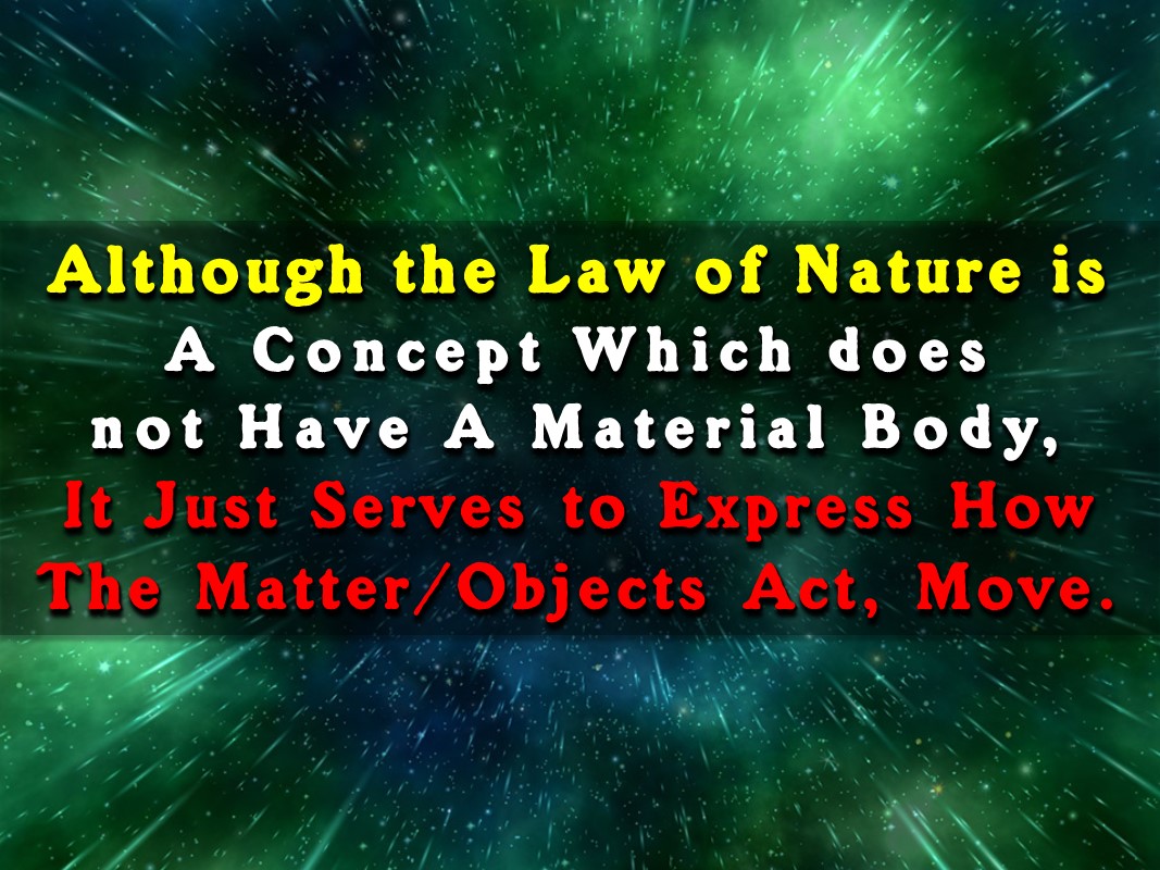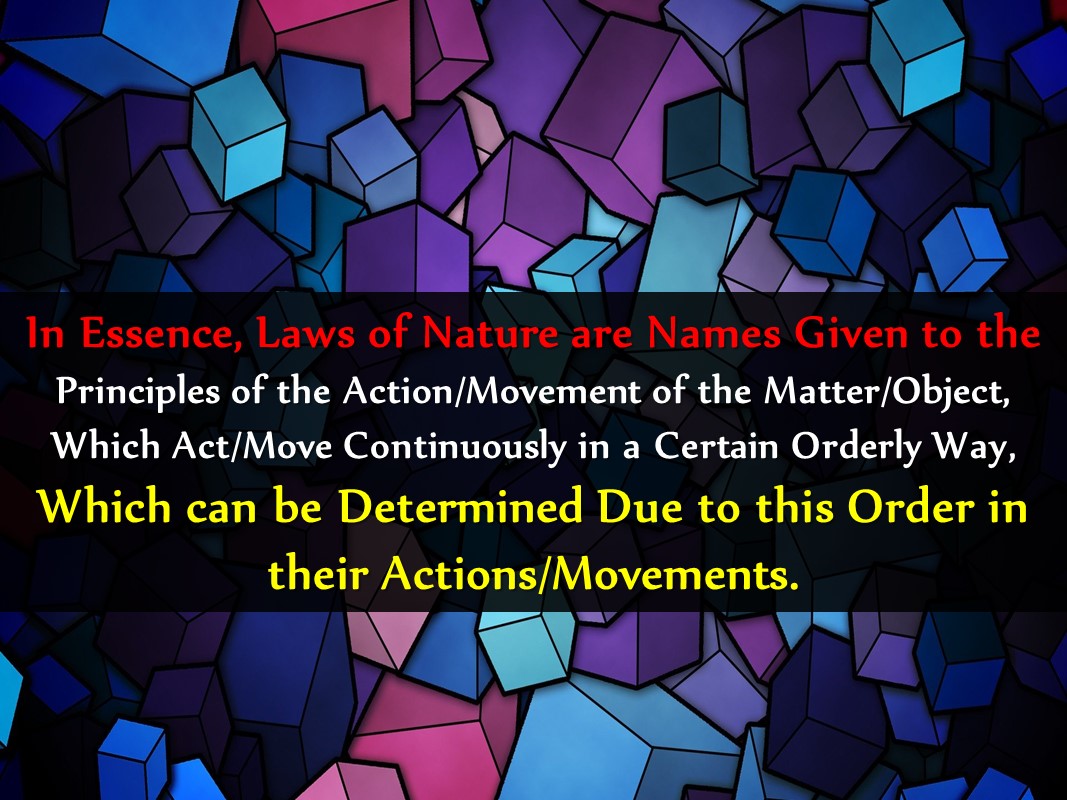 It could be claimed if the matter/objects did not move orderly; no discipline of science would ever be established. There is a specific point that we repeat from the very beginning of our explanations on Treatise of Nature: The Laws of Nature are not objects with the material substance, which have the properties, capabilities to create themselves or other things. They could not be the source of anything or any event. They could not be the reason of any formation. So what are the laws of nature?