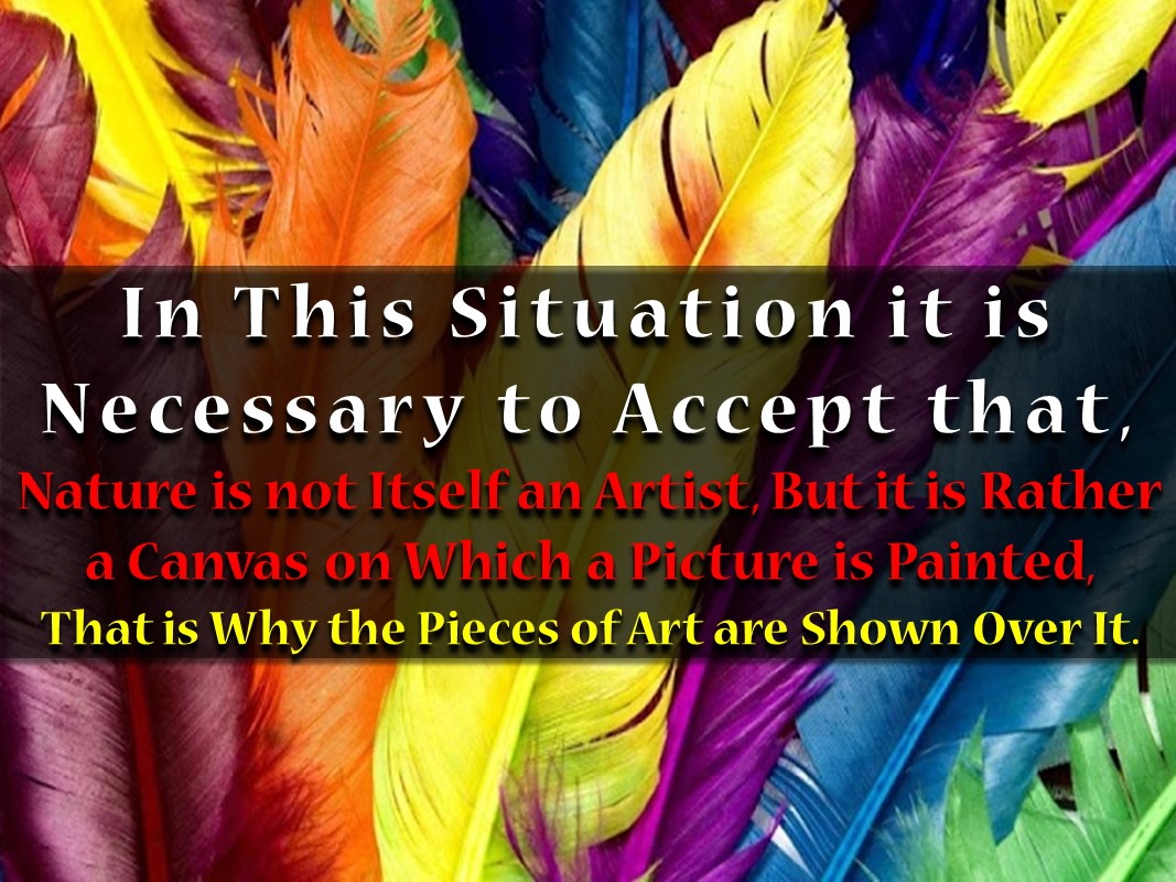 In this situation it is necessary to accept that, nature is not itself an artist, but it is rather a canvas on which a picture is painted, that is why the pieces of art are shown over it.