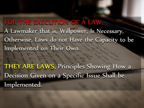 For the execution of a law, a lawmaker that is, willpower, is necessary, otherwise, laws do not have the capacity to be implemented on their own. As their name suggests, they are laws, principles showing how a decision given on a specific issue shall be implemented.