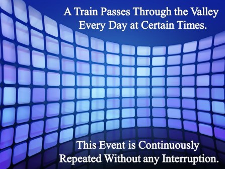 “A train passes through the valley every day at certain times. This event is continuously repeated without any interruption.