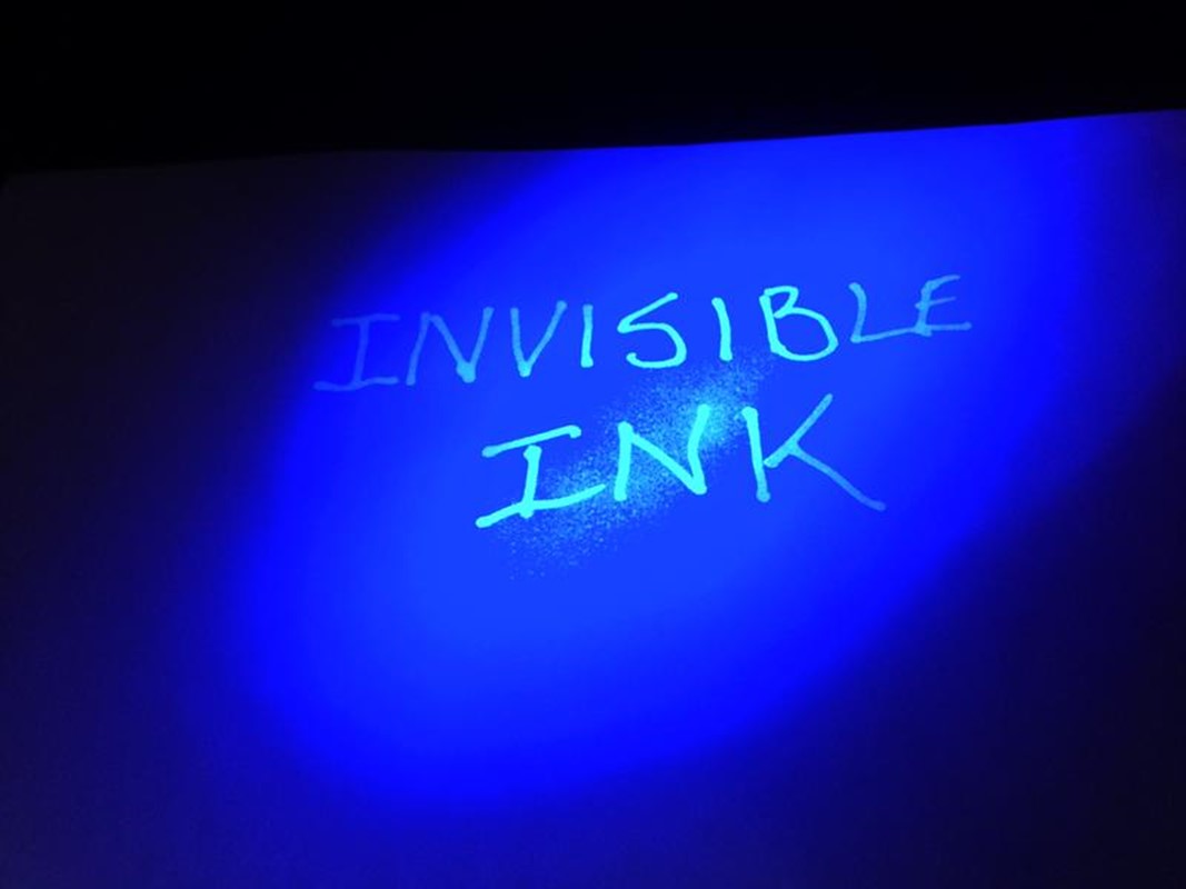 * Making an invisible note visible by spreading a material that makes invisible things visible, on the paper over which the invisible note is written,