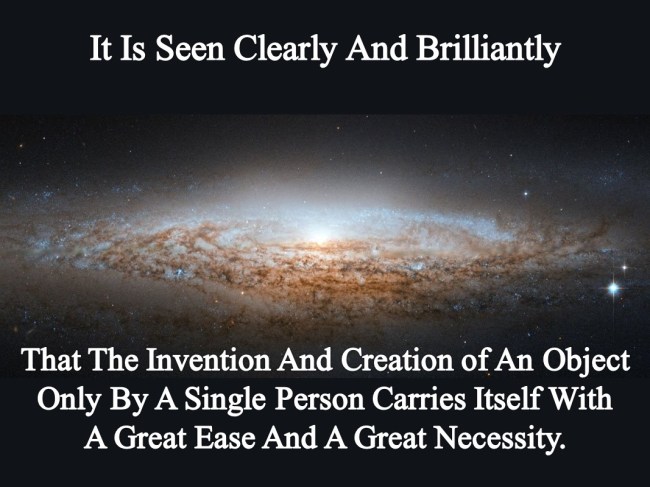It is seen clearly and brilliantly that the invention and creation of an object only by a single person carries itself with a great ease and a great necessity.