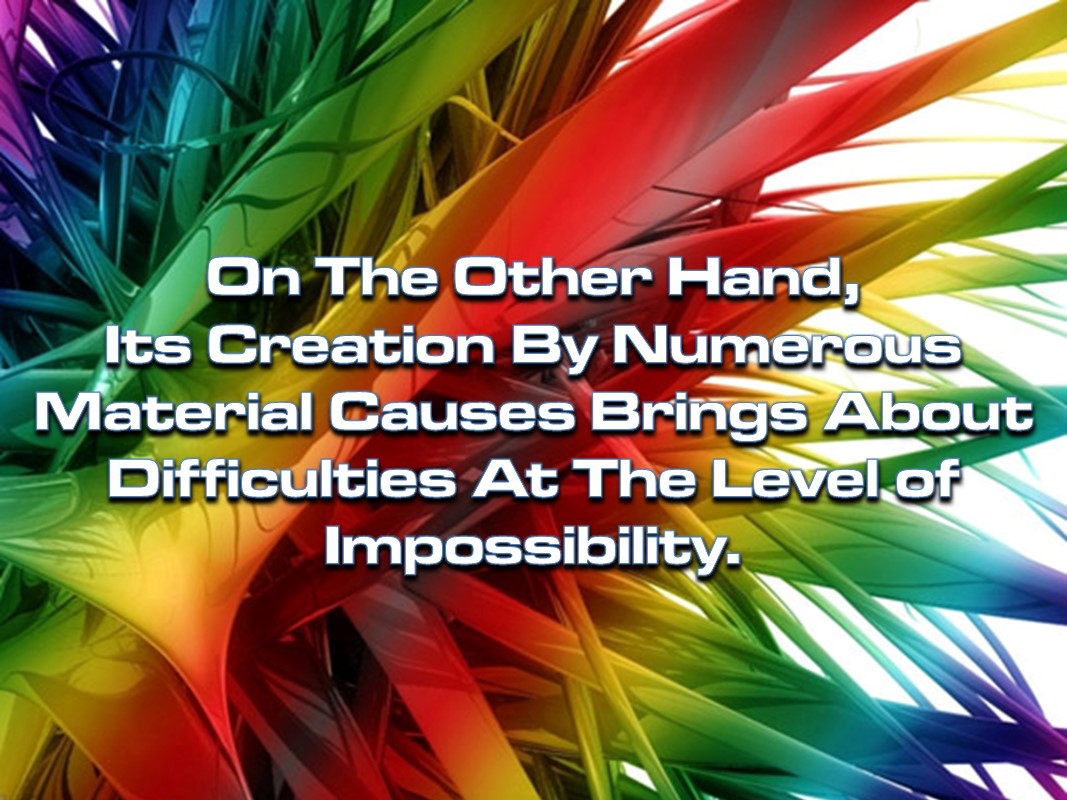 On the other hand, its creation by numerous material causes brings about difficulties at the level of impossibility.