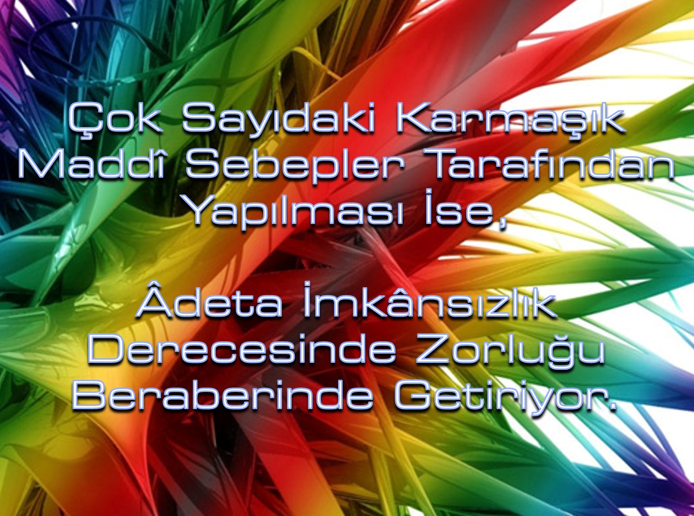 Çok sayıdaki karmaşık maddî sebepler tarafından yapılması ise âdeta imkânsızlık derecesinde zorluğu beraberinde getiriyor.