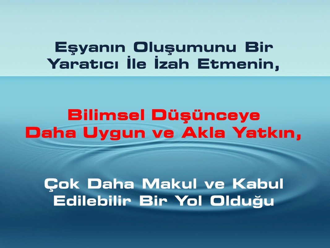 Eşyanın oluşumunu bir yaratıcı ile izah etmenin, bilimsel düşünceye daha uygun ve akla yatkın, çok daha makul ve kabul edilebilir bir yol olduğu ve bilimsel olarak kabul edilecek bir model varsa, bu modelin buna çok daha lâyık olduğunu açıkca tespit etmemiz gerekiyor.