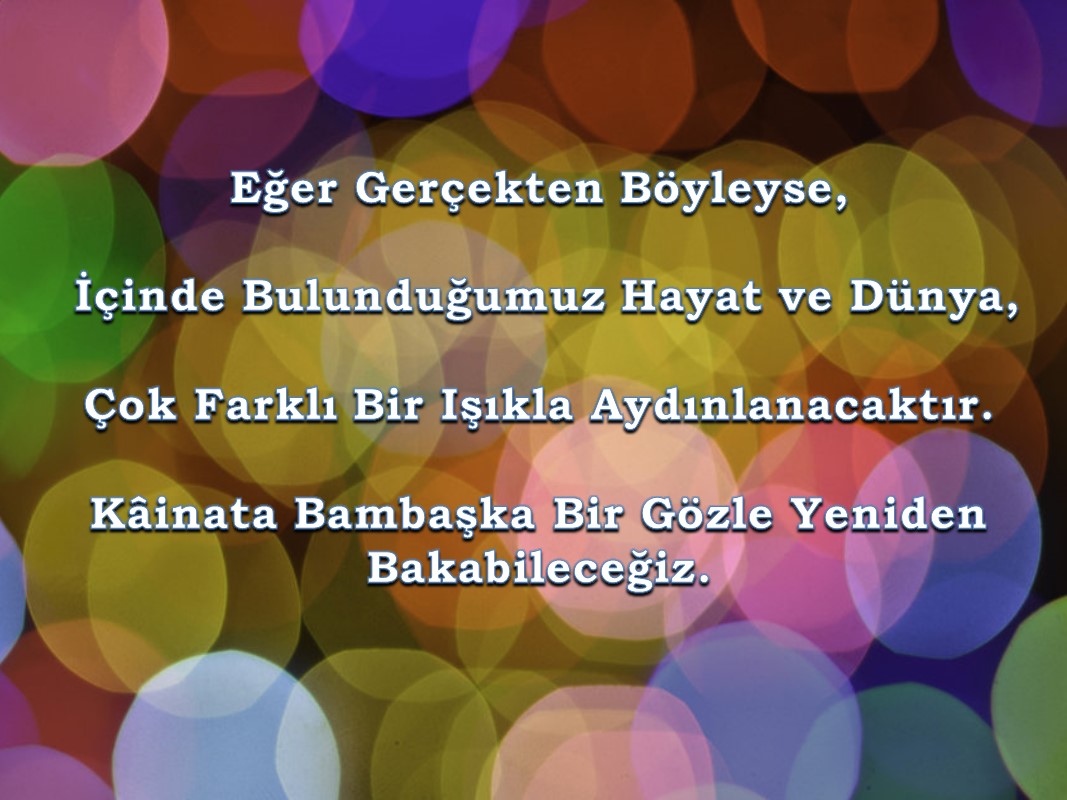 Eğer gerçekten böyleyse, içinde bulunduğumuz hayat ve dünya, çok farklı bir ışıkla aydınlanacaktır ve kâinata bambaşka bir gözle yeniden bakabileceğiz. Bu imkânı insan olarak elde edebileceğiz demektir.