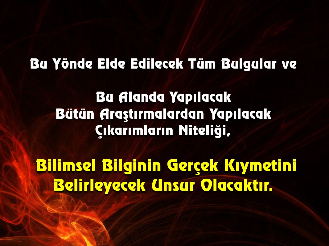 Bu yönde elde edilecek tüm bulgular ve bu alanda yapılacak bütün araştırmalardan yapılacak çıkarımların niteliği, bilimsel bilginin gerçek kıymetini belirleyecek unsur olacaktır.