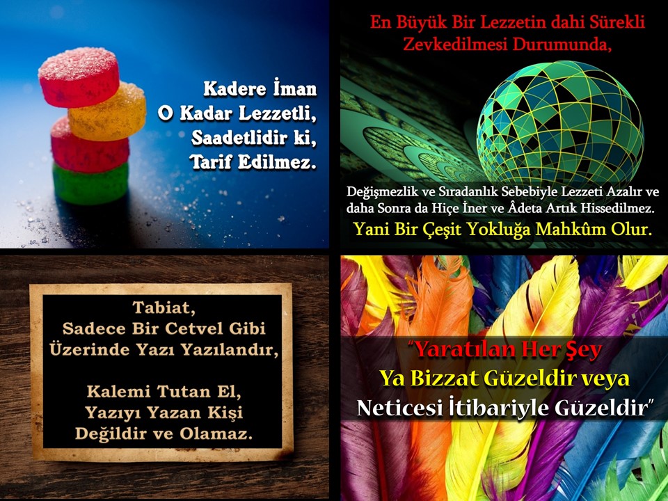 (Evet, tüm bunlar müstakil ve ayrı bir hizmet değil, ancak Risale i Nur’u ilan ve takdim etmek, tanıtmak ve okunmasını sağlamak için çok kuvvetli hizmet ve tanıtım araçlarıdır, tabir yerindeyse Risale-i Nur’un ve Kur’an’ın elinde keskin bir kılıç gibi, en sağlam ve kuvvetli mantık kurgusuna sahip bir hizmet ve manevi cihad aracı ve aletidirler ve Risale-i Nur gönüllülerince kullanılmayı beklemektedirler. Kardeşlerimizden kendi malları olan bu keskin ve parlak kılıcı kuşanmalarını talep ediyoruz. Cehalete, karanlığa, inançsızlığa, taassuba, geri kalmışlığa, bilim ve din sevgisi adına hep birlikte hücum edelim…)