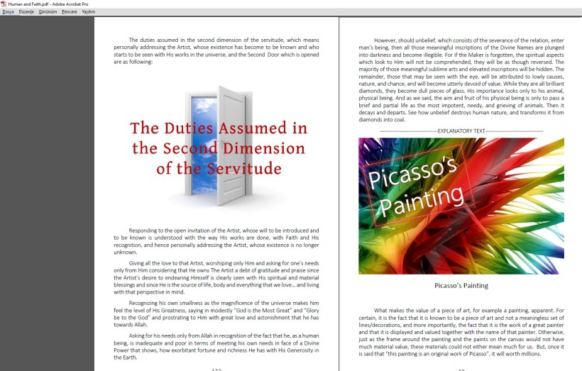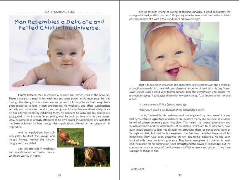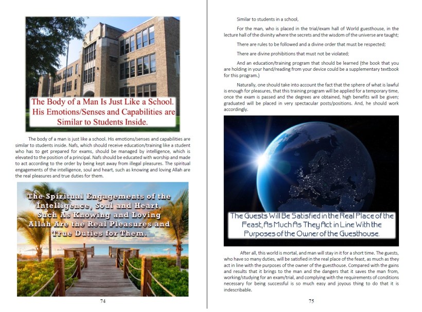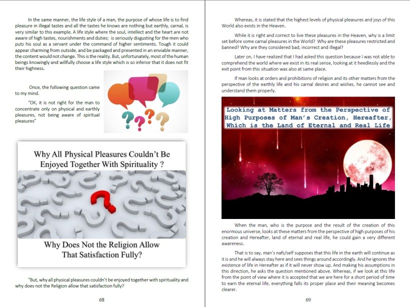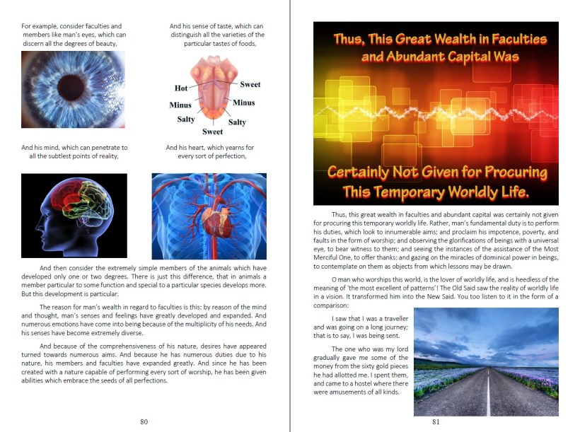 When you finish the book, you will witness that the beauties of the faith, which reveal the high value of the human being and the true character of the universe and which make them visible, are shown with an unprecedented style and with a clarity that could be accepted by anyone who is just and fair.