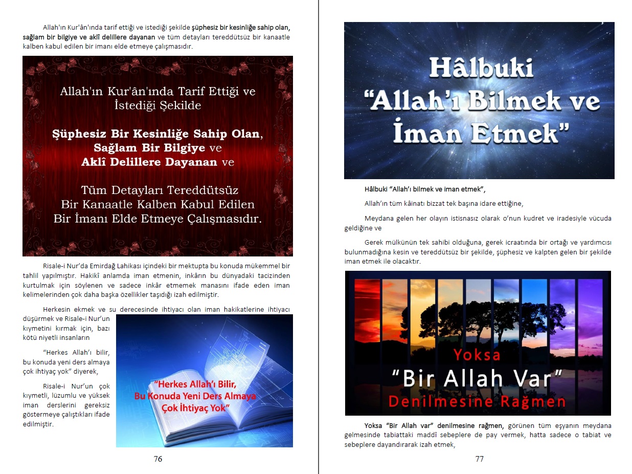 İnsanın sahip olduğu yüksek değeri ve kâinatın gerçek mahiyetini ortaya çıkartıp görünür hale getiren imanın güzelliklerinin, şimdiye kadar eşine rastlanmamış bir üslupla ve insaf sahibi herkesin kabul edeceği bir netlikte gösterildiğine şahit olacaksınız.