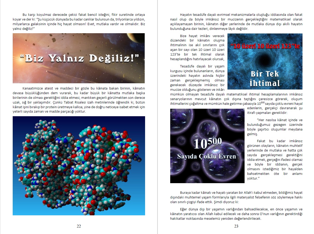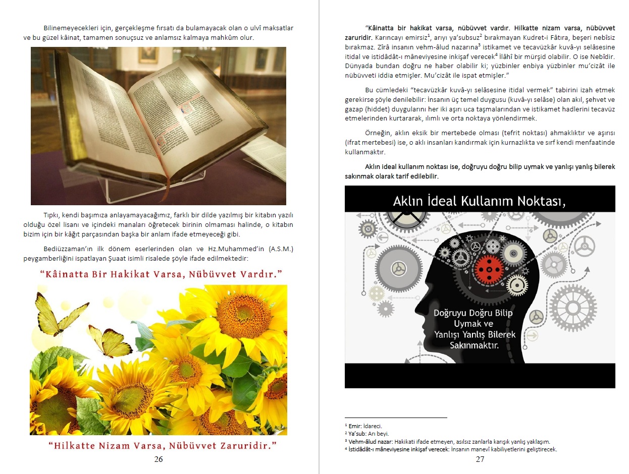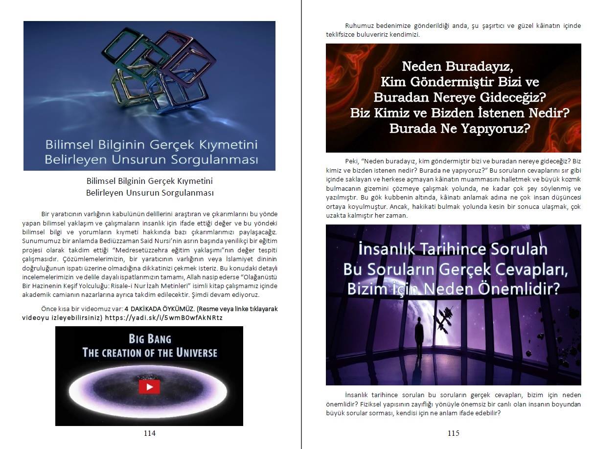 Tüm insanlığın ihtiyacı olan ve varlığın temel gerçekliğini arayan herkese hitap eden ve bilim dünyasını ve bilim insanlarını daha da derinden ve yakından ilgilendiren ve ilahî vahyin eliyle getirilen yüksek hakikatlar, bu eserlerle yeniden keşfediliyor ve akli metotlarla tamamen ispat ediliyor.