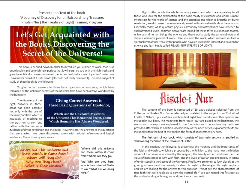 * Journeys of Discovery Risale-i Nur (Treatise of Light) Training Program, Based on Academic Work and Supported by Visuals