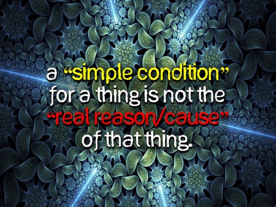 Yes, the existence of an object could be dependent on numerous conditions. It is not possible to claim that a condition is enough by itself for the existence of an object just because lack of it leads to the nonexistence of that object. In other words, a simple condition for a thing is not the “real reason/cause” of that thing.