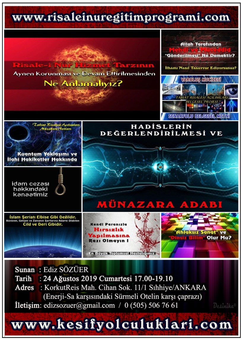 Program içeriği, Risale-i Nur hizmet tarzının korunmasından ne anlaşılması gerektiği, mehdi ve müceddid gönderilmesinin ne demek olduğu, hadislerin değerlendirilmesi, münazara adabı ve akılcı yöntemleri, kuantum yaklaşımının ilahi hakikatlerle ilişkisi, idam cezası, İslam Şeriatı gibi çok önemli konuların ele alınacağı 9 adet başlıktan oluşmaktadır.