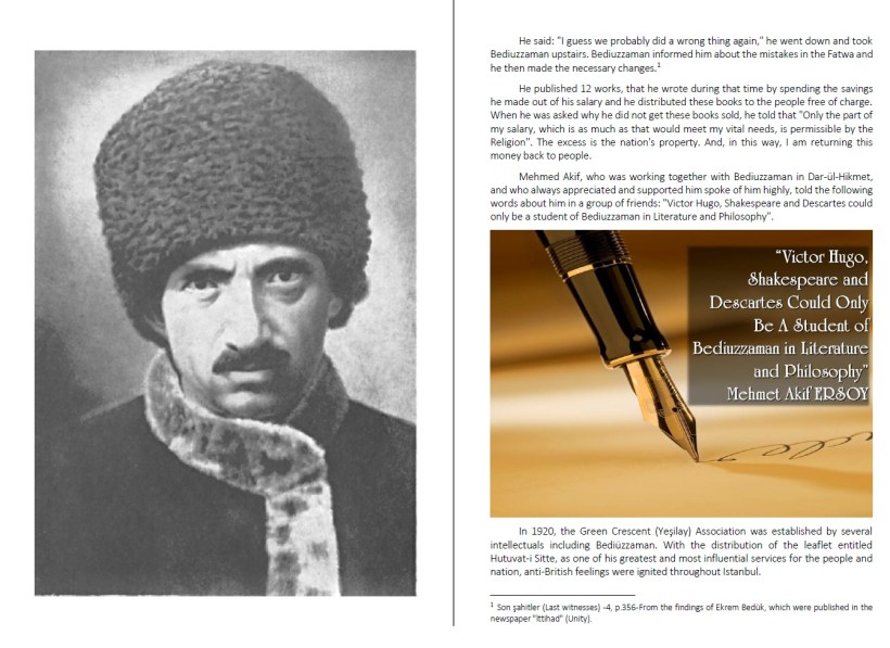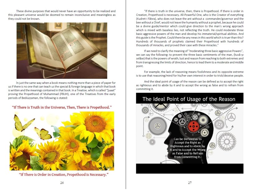 High truths, which the whole humanity needs and which are appealing to all those who look for the explanation of the basic reality of existence and which is more interesting for the world of science and the scientists and which is brought by divine revelation, are discovered once again and proved with rational methods in these works. Especially today, while quantum physics, astronomy and astrophysics have reached to such advanced levels, common answers are looked for these three questions on matter, universe and human being; the science and these works study the same subjects and share a common ground of work. Here you are: The work, which contains in itself a spiritual/immaterial treasury for people who have an irresistible interest and passion for science and learning, is called RISALE-I NUR (TREATISE OF LIGHT).