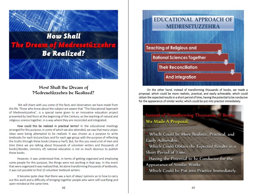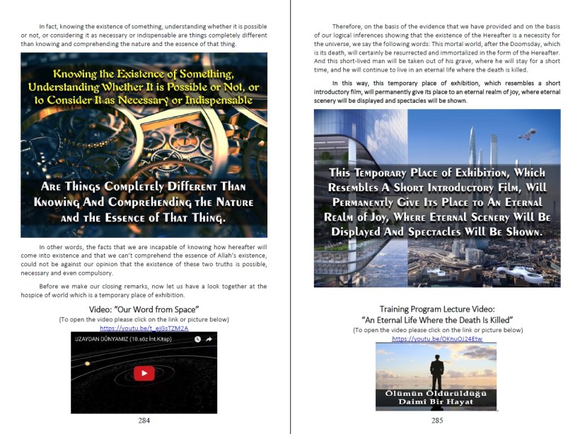 Reading and watching the written truths in a verbal and visual format (with additional explanations not provided in our book) enables you to better understand and feel them. In this way, you are following the most fruitful method in understanding the knowledge of faith, which cannot be understood just with intellect but rather are “felt truths”, and in opening the door for new perspectives for them. We keenly believe that with this method of reinforcement (Allah willing) highest level of benefit will be realized in terms of understanding Risale-i Nur and the universe.